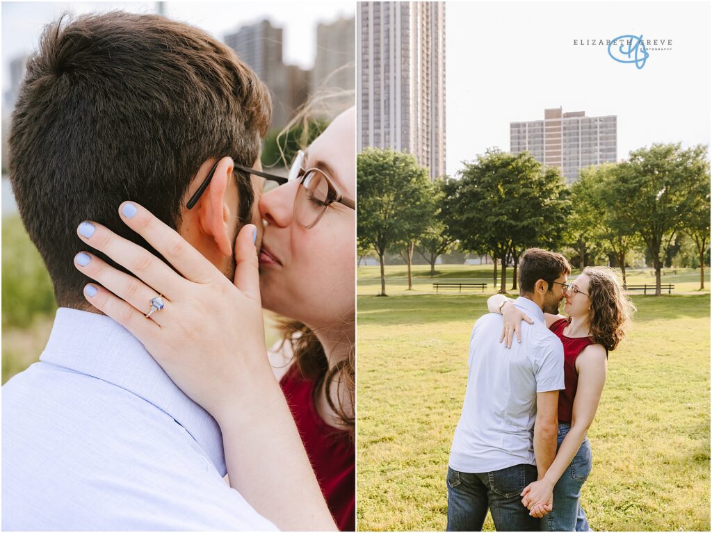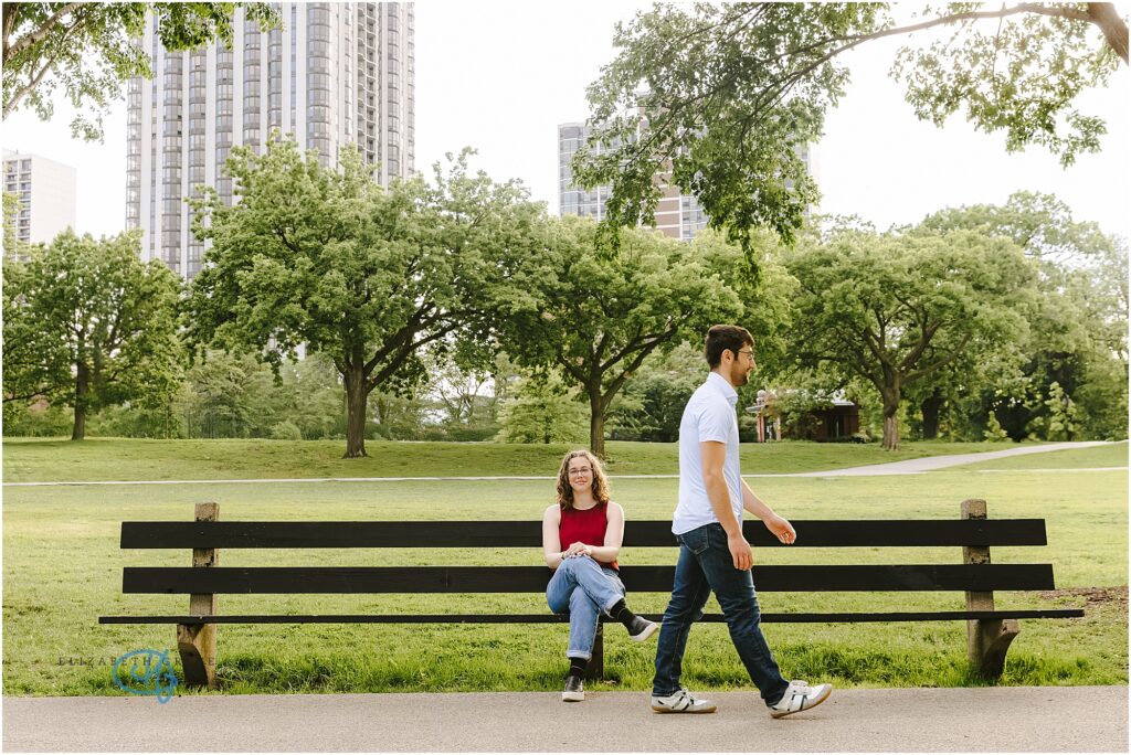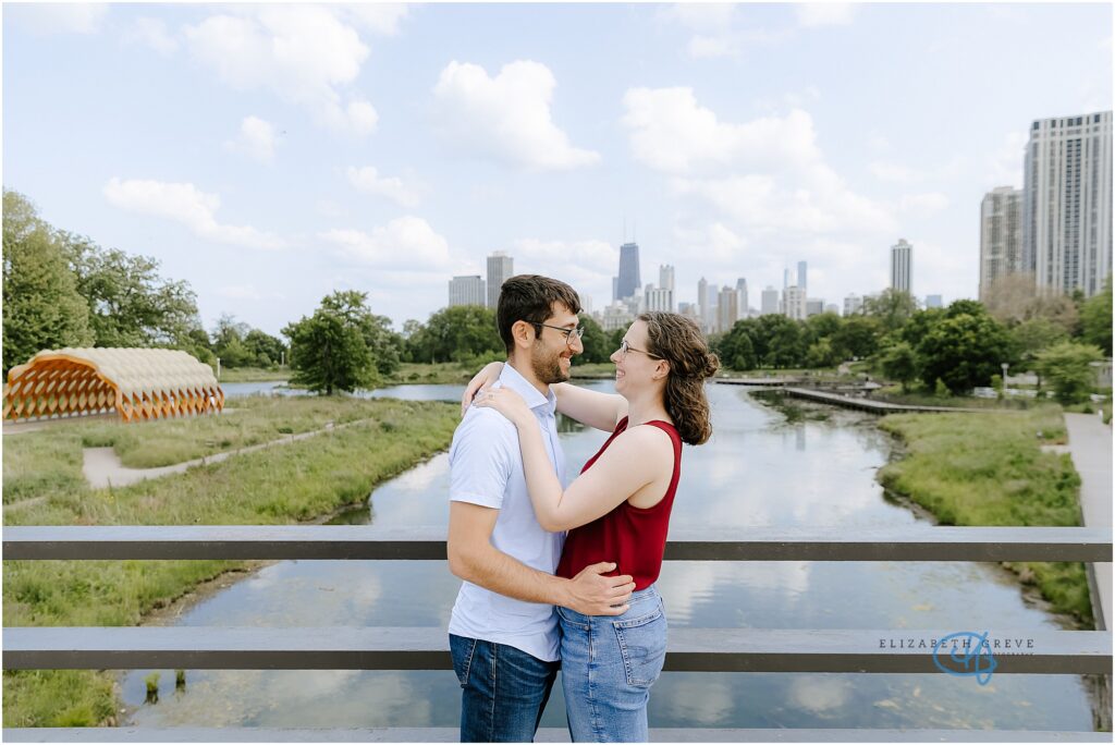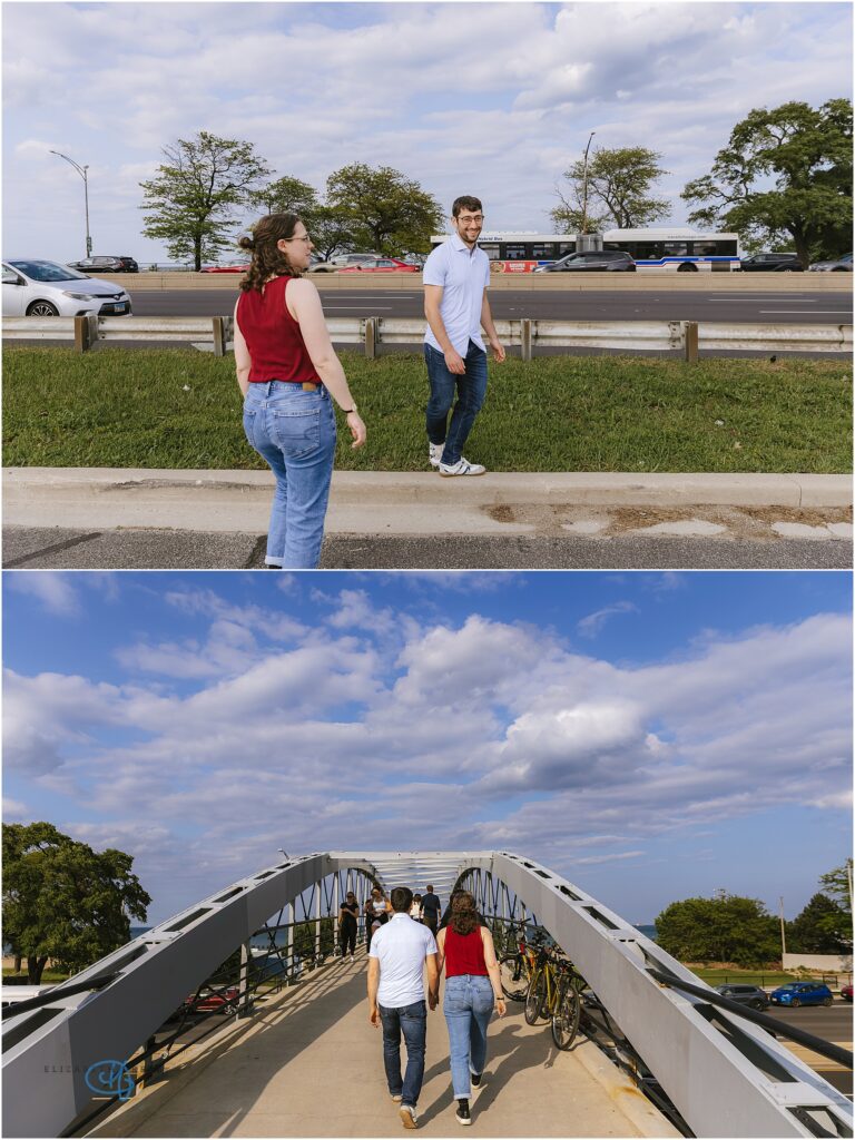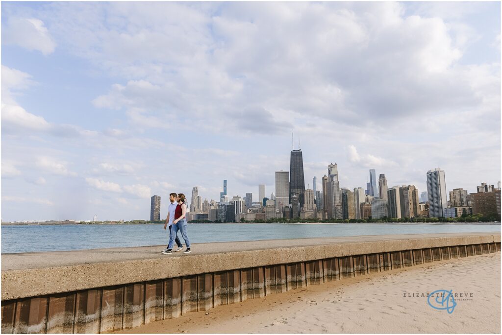 For their engagement, they wanted to stay near the neighborhood where they lived, incorporate the iconic Chicago skyline in the background, and finally, end their session at their favorite bar down the street from their house, Toons.
