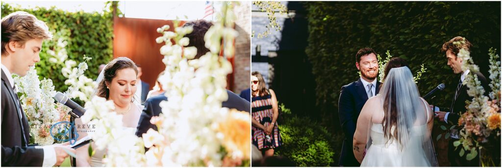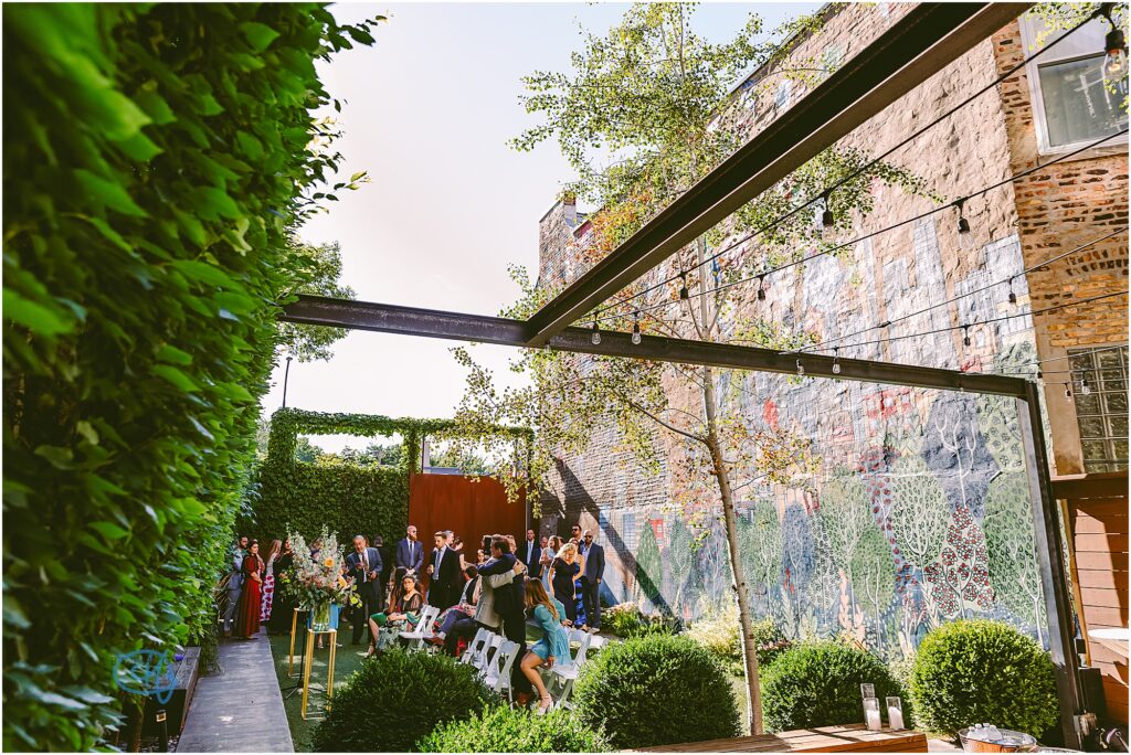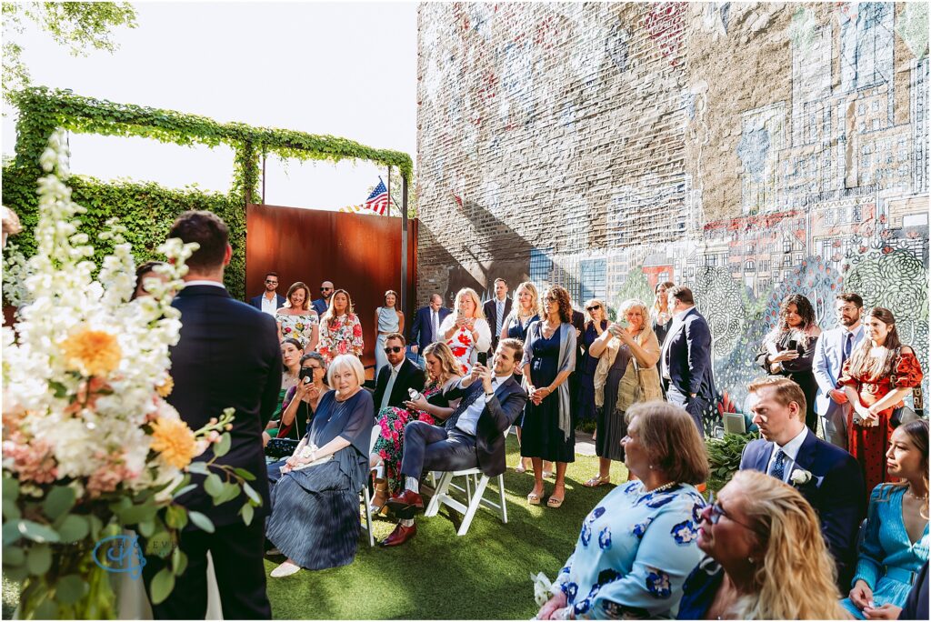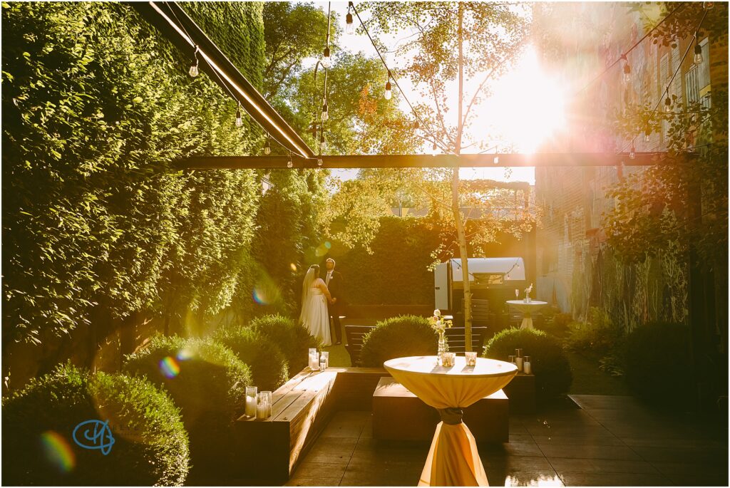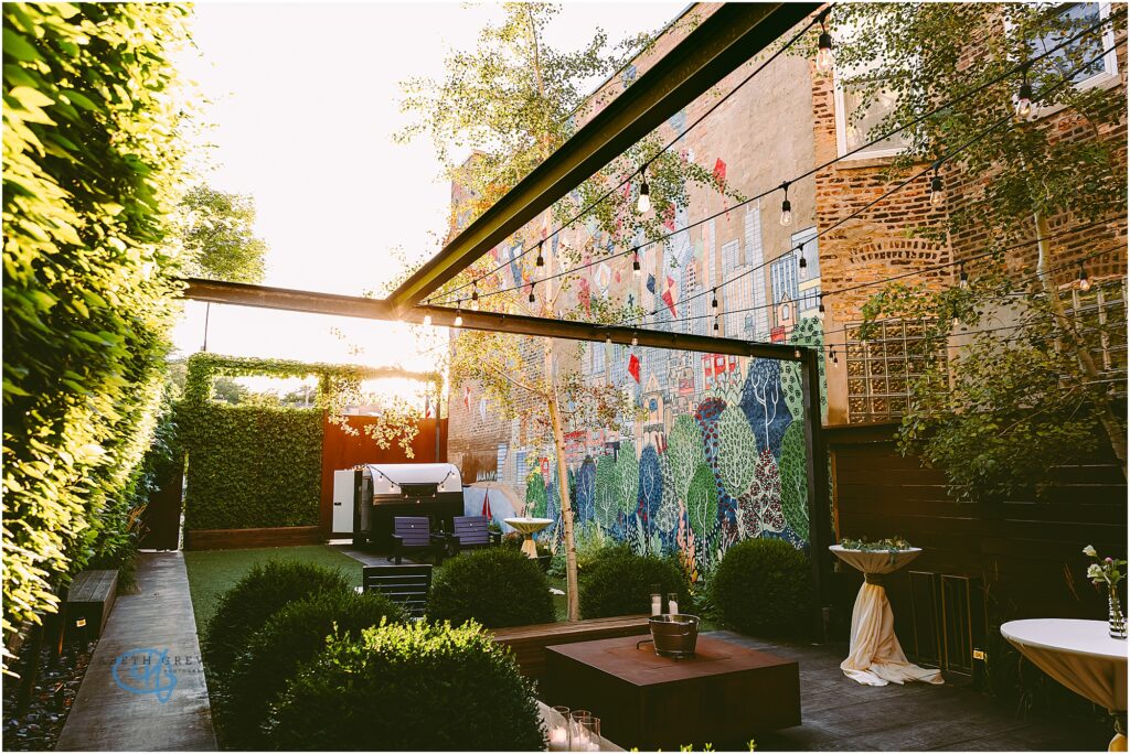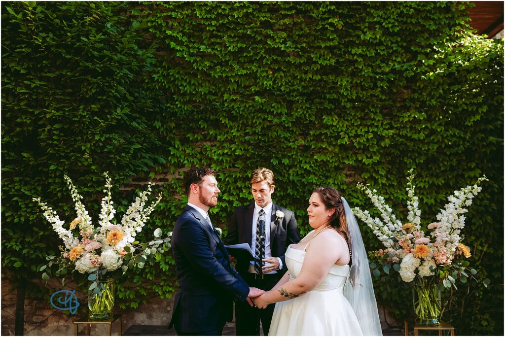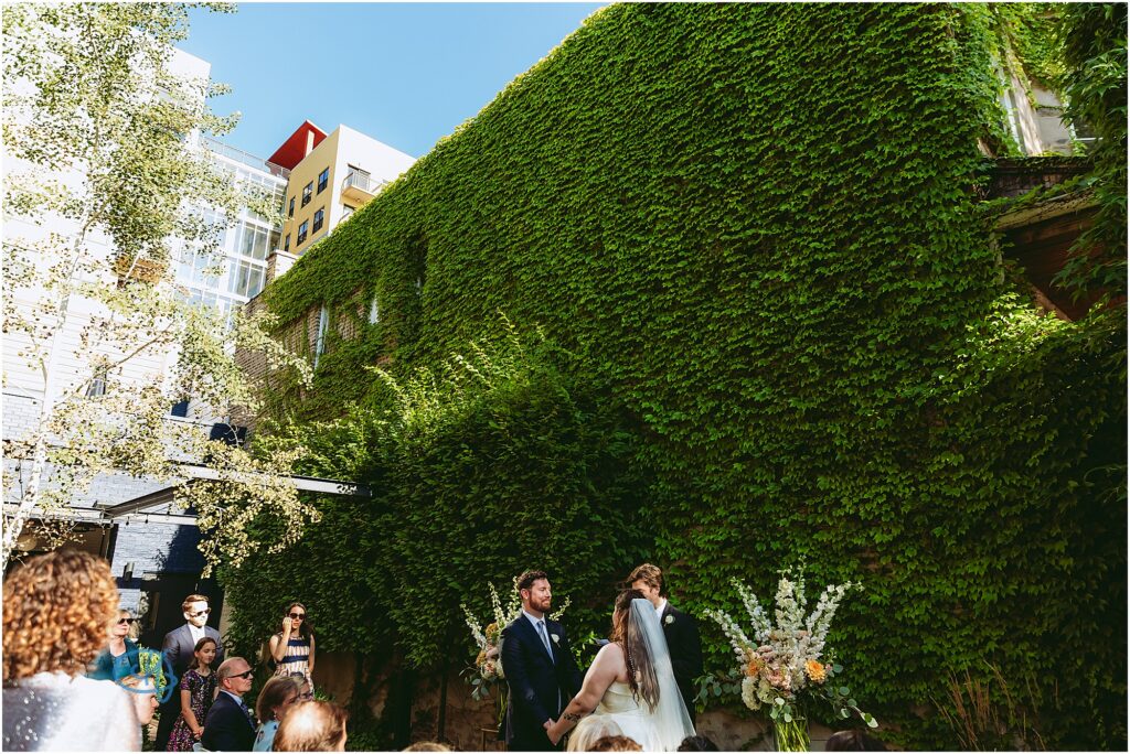 Nestled in the heart of the city, Lytle House gave Valentine and Adam the perfect blend of urban edge and intimate charm. The ivy-covered courtyard glowed in the late afternoon sun, creating a warm, golden backdrop as they said their vows. The space felt tucked away and private, yet undeniably Chicago.