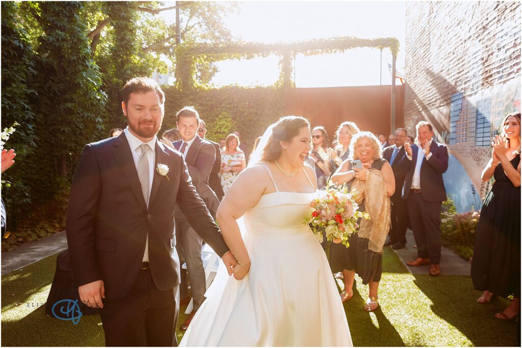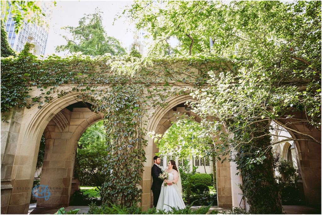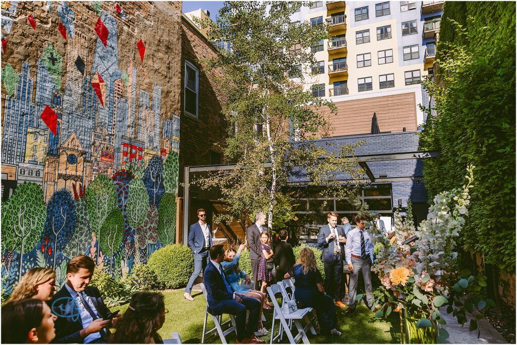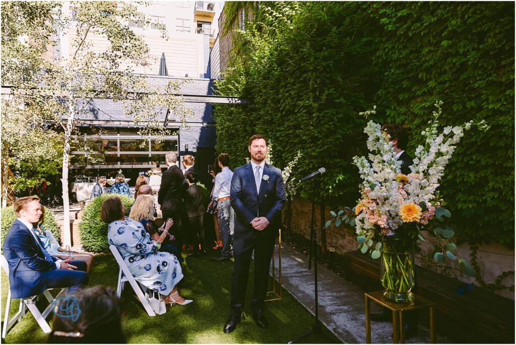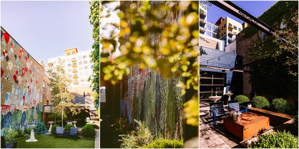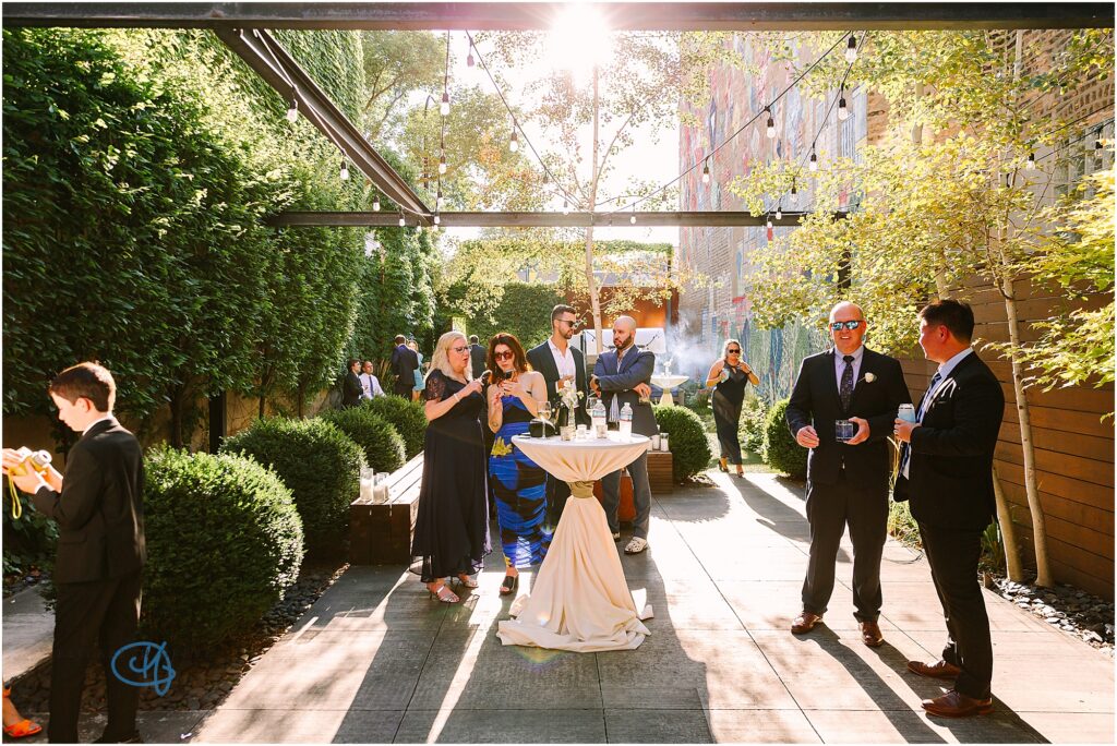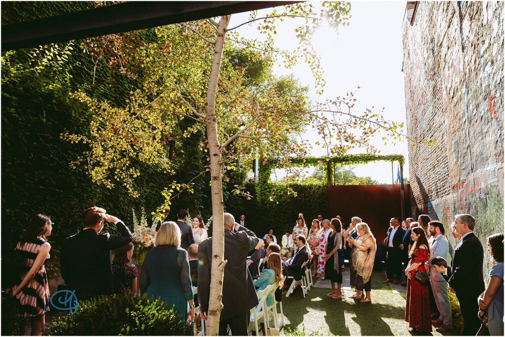 Nestled in the heart of the city, Lytle House gave Valentine and Adam the perfect blend of urban edge and intimate charm. The ivy-covered courtyard glowed in the late afternoon sun, creating a warm, golden backdrop as they said their vows. The space felt tucked away and private, yet undeniably Chicago.