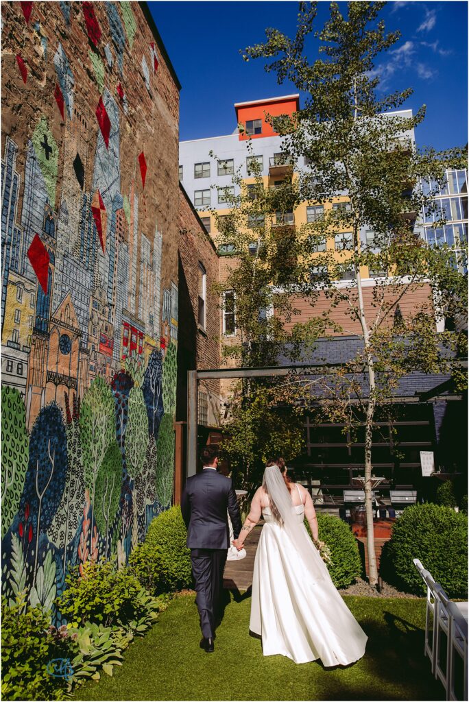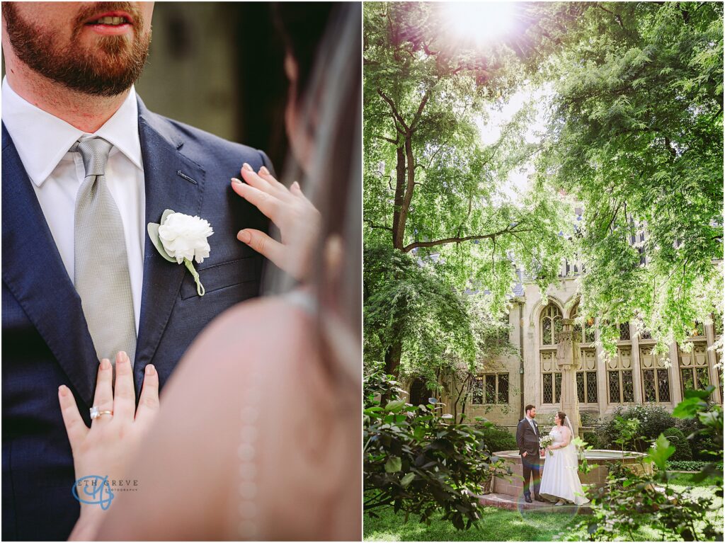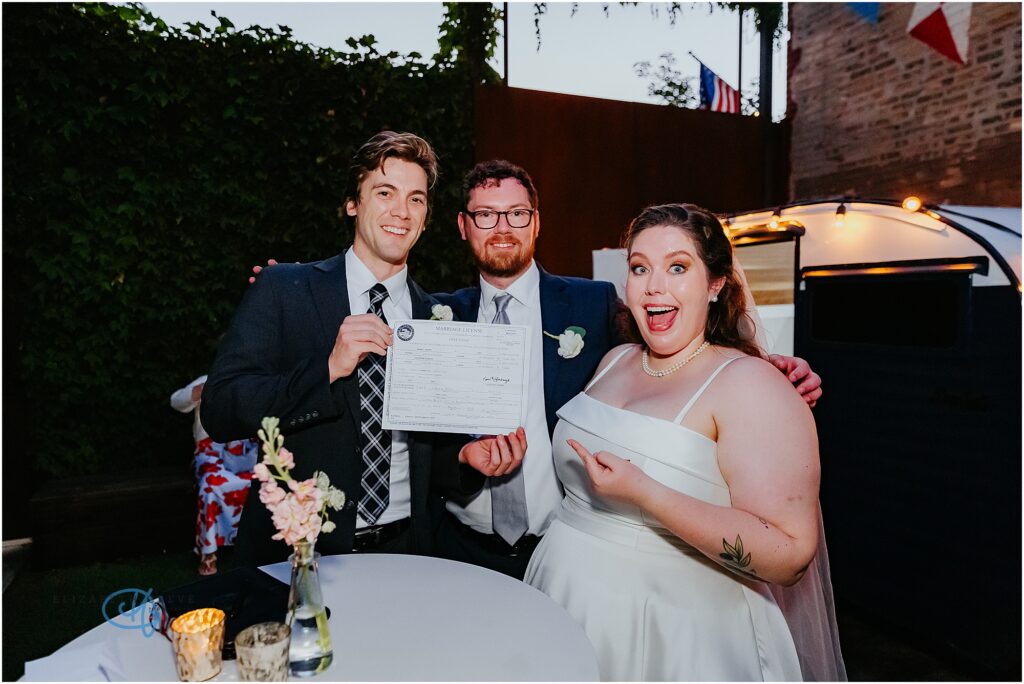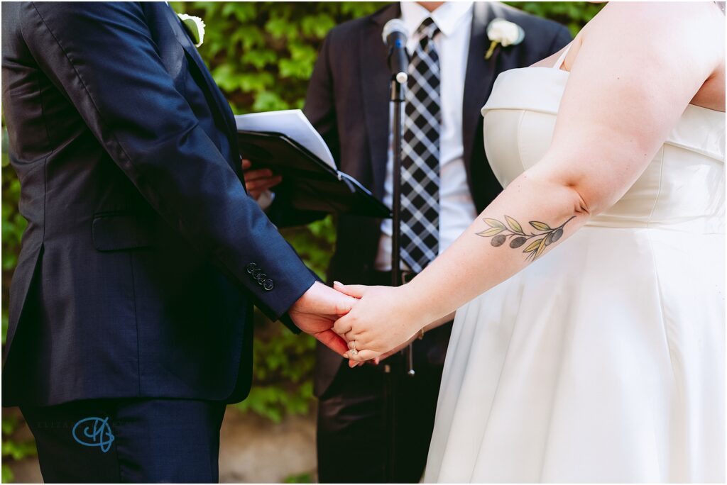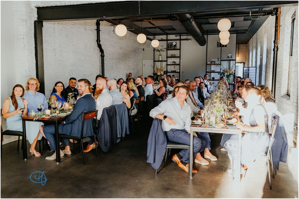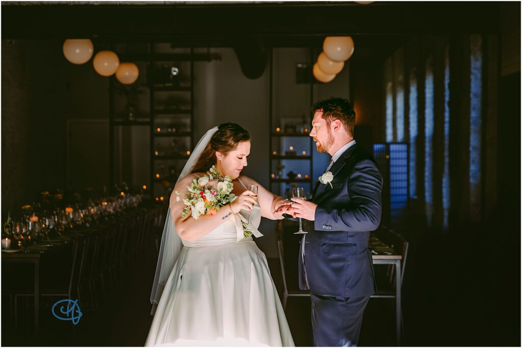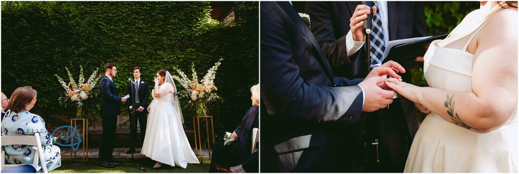 Nestled in the heart of the city, Lytle House gave Valentine and Adam the perfect blend of urban edge and intimate charm. The ivy-covered courtyard glowed in the late afternoon sun, creating a warm, golden backdrop as they said their vows. The space felt tucked away and private, yet undeniably Chicago.